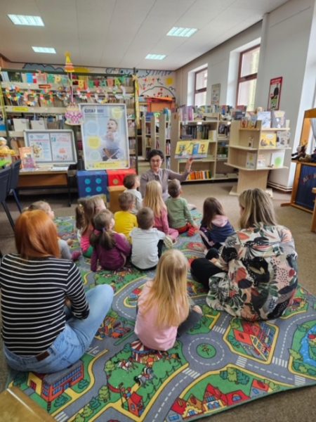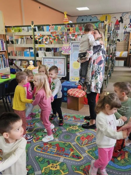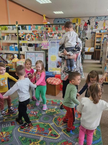 NOVA GRADIŠKA, 3. travanj 2024. – Na Dječjem odjelu Gradske knjižnice Nova Gradiška vladalo je danas veselo raspoloženje. Ravnateljica Marija Bradašić-Mikolčević i knjižnjičari Goran Bašić i Renata Matijašević povodom Međunarodnog dana dječje knjige, 2. travnja ugostili su Stariju jasličku skupinu „Sunašca“ iz DV „Maslačak“ Nova Gradiška i priredili im Rođendansku proslavu.