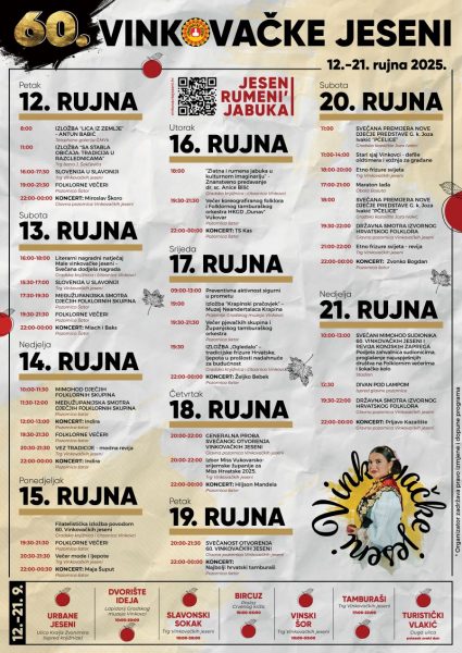 Slavonski sokak s više od 40 izlagača autohtonih proizvoda uz svirku tamburaša, Vinski šor s 12 vinara, Bircuz, Urbane jeseni s mladim vinkovačkim glazbenicima i panoramskim kotačem, samo su dio onoga što se nudi.