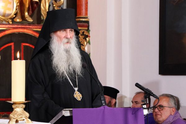 Nakon popričesne molitve svoju riječ okupljenima uputio je pakračko-slavonski episkop Jovan Čulibrk koji je podsjetio kako je istočno-slavenski knez Vladimir prije više od tisuću godina vodio svoj nevjernički narod u opsadu Carigrada. Nakon opsade, ponukan molitvama svoje bake Olge knez Vladimir poslao je misionare diljem svijeta da traže vjeru za njegov nevjernički narod i tako su bili i u Carigradu i odande se vratili ozarenih lica, govoreći da ulaskom u carigradski Hram nisu znali jesu li na nebu ili na zemlji, jer je očigledno s njima živi Bog, istaknuo je episkop Jovan. Istaknuo je kako je i sam knez Vladimir 988. godine nedaleko od grada Kijeva primio krštenje sa svojim narodom te postao Vasilije. Izrazio je žalost što danas tu krstionicu iz koje su izašli i Rusi i Ukrajinci gledamo kako se pretvara u „Crveno more“ i to krvlju nevinih ljudi. Takvim životom i mi postajemo isti onaj nevjernički narod kneza Vladimira kakav je bio prije krštenja, napose mi kršćani koji smo potekli iz iste krstionice i položili zavjet da ćemo slijediti Kristove riječi: „Ljubite jedni druge“. Dodao je još kako sile ovoga svijeta, koje su ponovno probudile u nama ostatke onog nevjerničkog naroda i nahuškale nas jedne na druge, ne mogu biti od Boga, nego dolaze od onoga koji je posvađao Kajina i Abela te prevario Adama i Evu te im se trebamo oduprijeti. Poželio je na kraju da nam Bog po riječima današnjega evanđelja dadne mudrost da čujemo njegovu riječ i pokajemo se kako bi nam se približilo nebesko carstvo Oca, i Sina i Duha Svetoga.