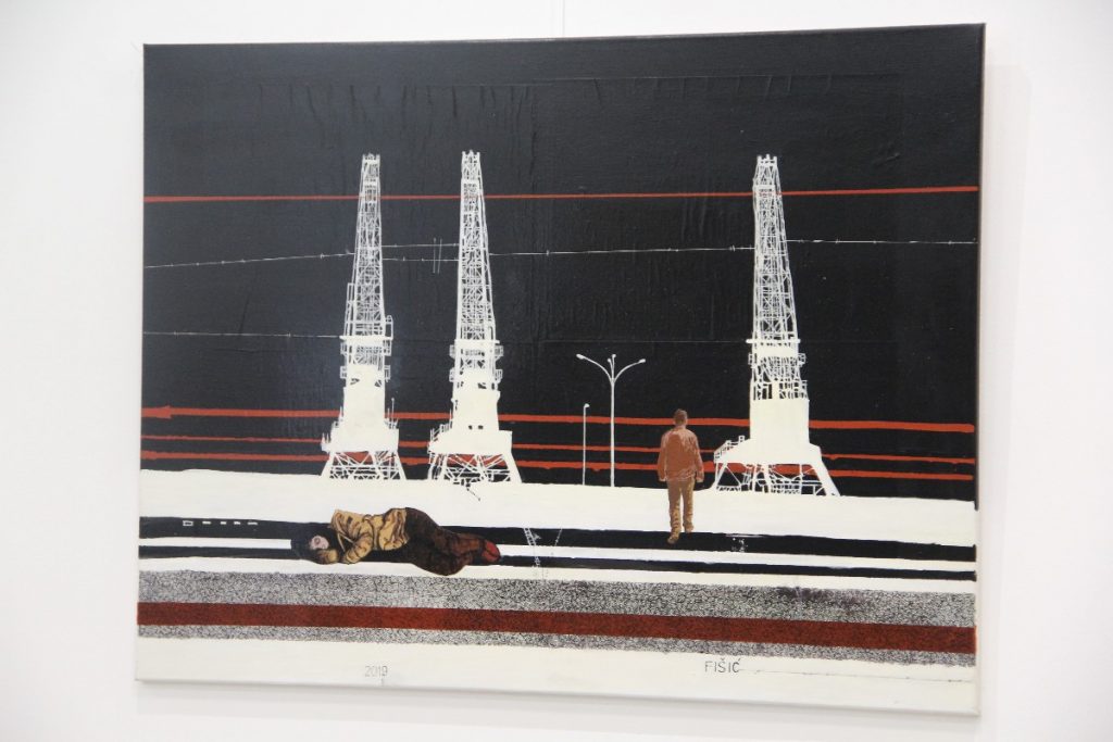 Sonja Švec Španjol, mag.hist.art. govorila je o izložbi naglašavajući kako je specifična atmosfera radova ostvarena spajanjem različitih slikarskih i crtaćih tehnika, kontrastom boja, ali i kontrastom dimenzija gorostasnih urbanih vizura i uprizorenog ljudskog bića koje je posve disproporcijonalno u usporedbi s opustošenim građevinama.