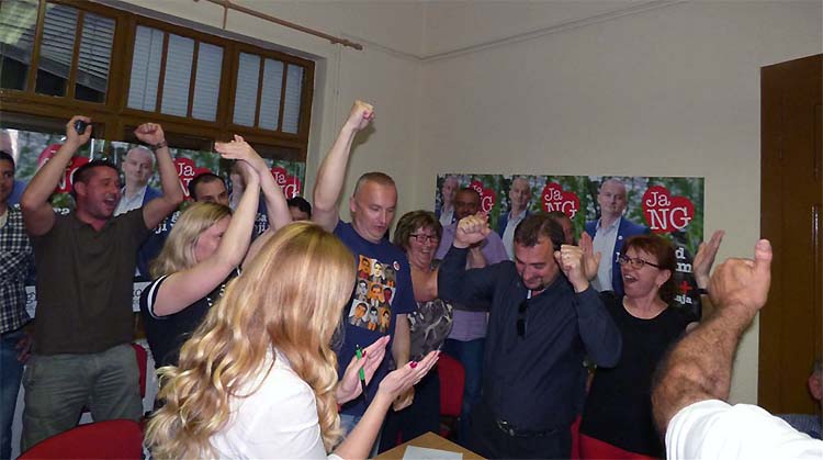 NOVA GRADIŠKA – Kako su u izborni stožer SDP-a stizali rezultati s izbornih mjesta, zadovoljstvo i euforija među članovima SDP-a i Hrvatskih laburista, izazvani velikom izbornom pobjedom, bili su sve veći. Sve se češće skandiralo ime Vinka Grgića, novoizabranog novogradiškog gradonačelnika, koji je primao brojne čestitke i koji, također, nije krio zadovoljstvo.