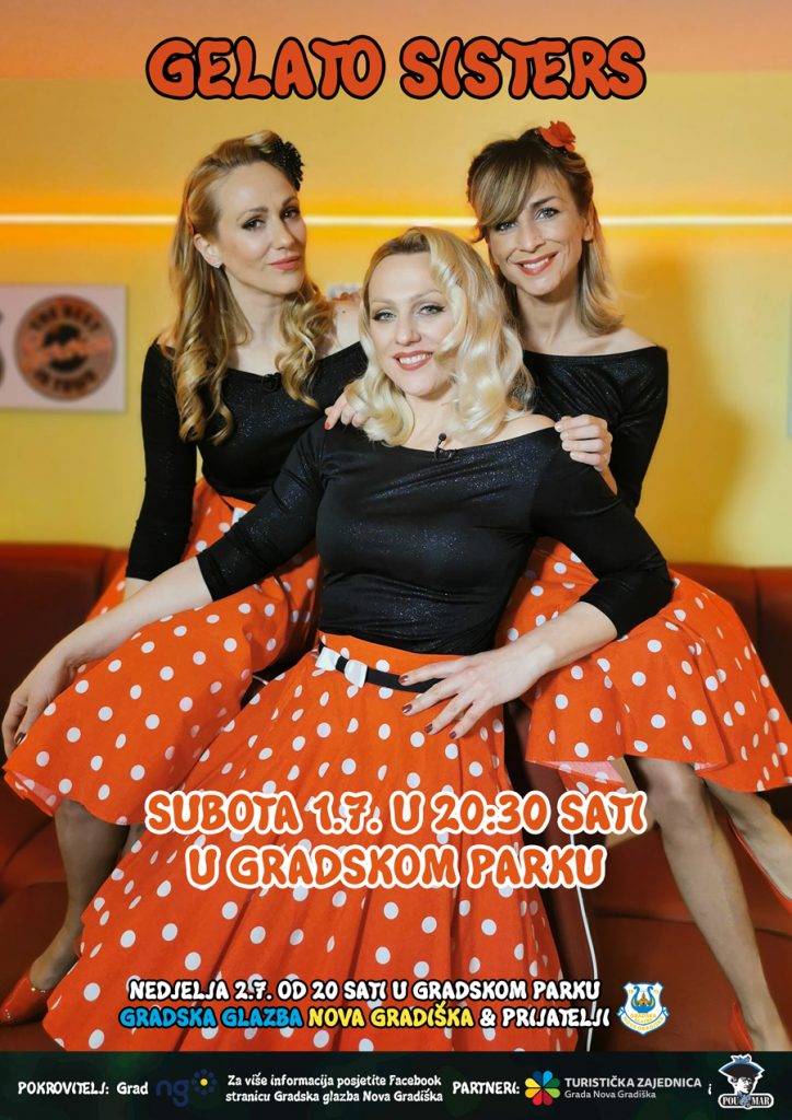 Gradska glazba Nova Gradiška vas poziva na nastup skupine GelatoSisters koji će se odviti ovu subotu, 1. srpnja, u središnjem gradskom parku parku s početkom u 20:30 sati.