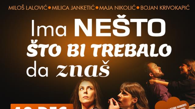 Ima nešto što bi trebalo da znaš je predstava o muško-ženskim odnosima, povjerenju, braku, laganju, s puno humora koji najčešće nastaje kao posljedica nesporazuma. Glumci nas do kraja drže u napetosti, hoće li pobijediti laž ili istina, treba li uvijek govoriti istinu ili je ponekad bolje lagati kako bi se izbjegla istina koja može nanijeti još veće zlo?
