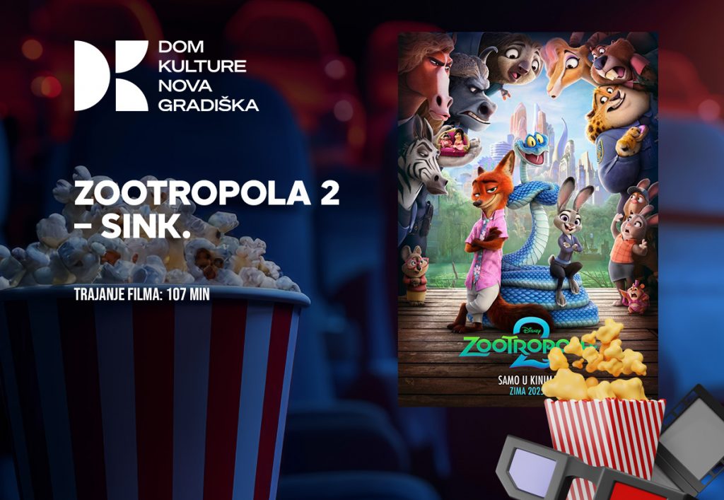 Kino: ZOOTROPOLA 2 – SINK. PETAK, 28. 11. U 17:00 i SUBOTA, 29. 11. U 11:00