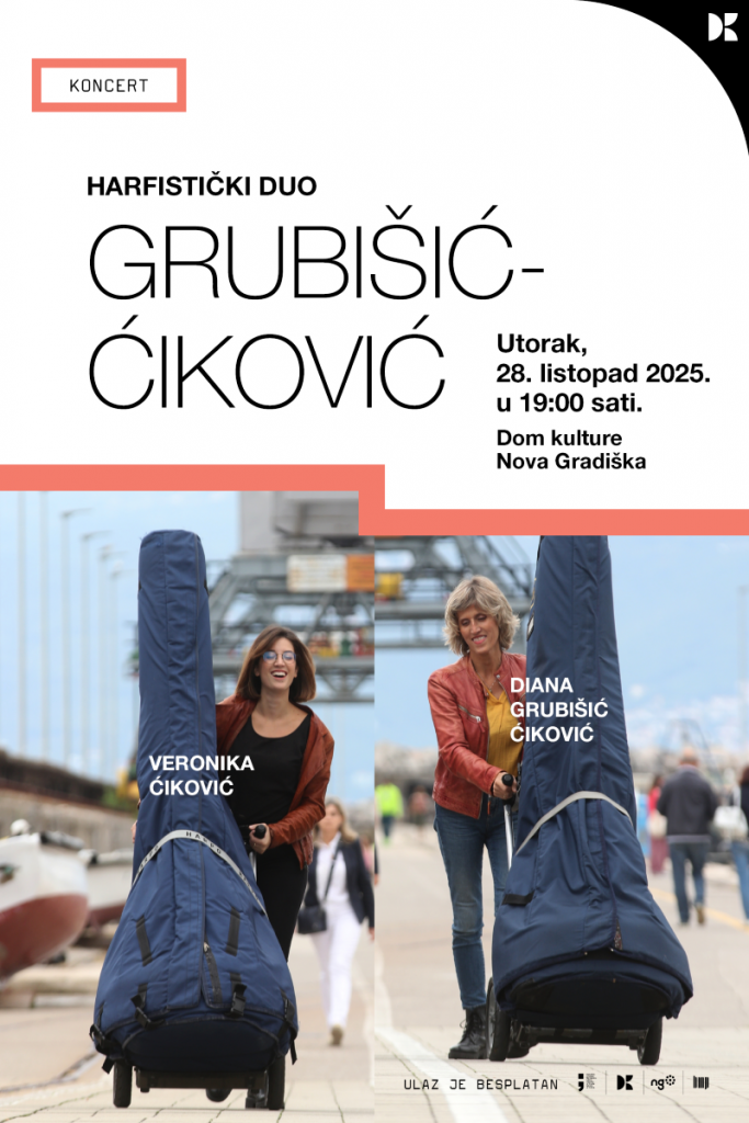 Pozivamo vas na koncert klasične glazbe “Structures transparentes et volantes“ na kojem će nastupiti harfistički duo Grubišić – Ćiković u sastavu Diana Grubišić Ćiković i Veronika Ćiković. Nastup cijenjenih umjetnica održat će se u utorak 28. listopada u 19:00 u Domu kulture.