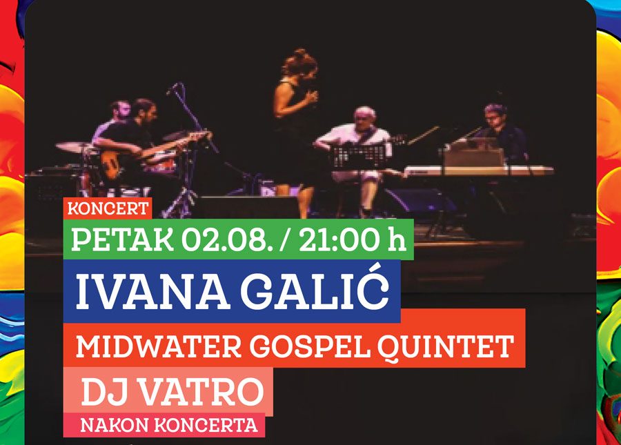 U petak, 2. 8. s početkom u 21:00 sati nastupaju Ivana Galić i MIDWATER GOSPEL QUINTET.