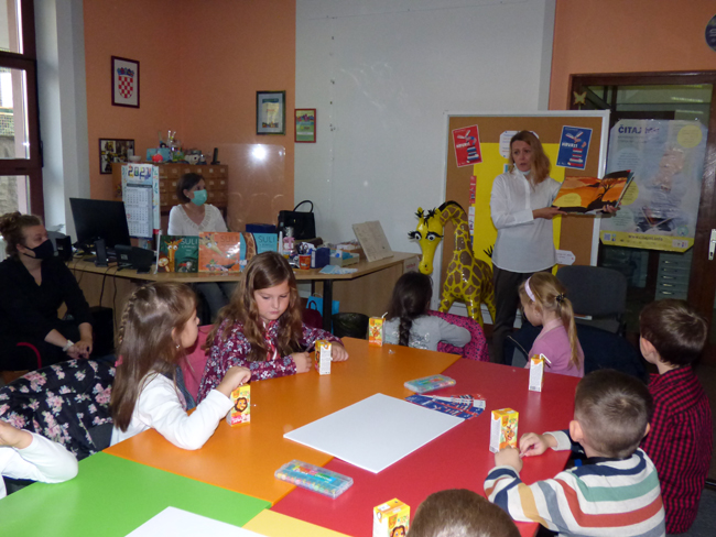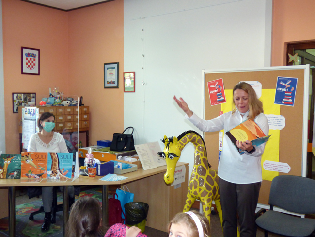 NOVA GRADIŠKA, 18. listopada 2021. – Brojna događanja u Mjesecu hrvatske knjige, Gradska knjižnica nastavila je danas na radost prvašića iz Osnovne škole „Mato Lovrak“. Na Odjelu za djecu bilo je to za njih u kojoj je glavna junakinja dugovrata žirafa Suli. Autorica je brzo u razgovoru uspostavila spontani kontakt sa djecom koja su kroz stihove saznala sve o žirafi Suli, njenim zabavnim avanturama i prijateljstvu.