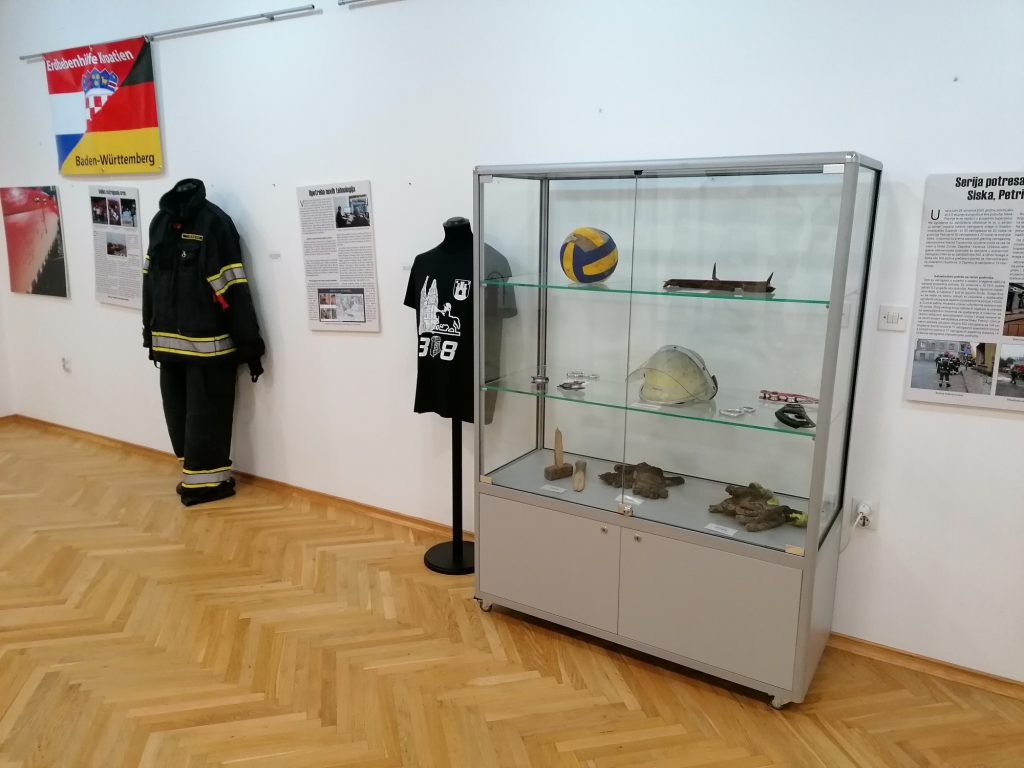 Ova izložba nije postavljena samo u virtualnom okruženju. U Muzeju su uz fotografije postavljeni informativni plakati, ali i odore i oprema koju su vatrogasci koristili na intervencijama. Za potrebe izložbe vatrogasci JVP Grada Varaždina su simulirali podupiranje na dijelu stropa u izložbenoj galeriji.