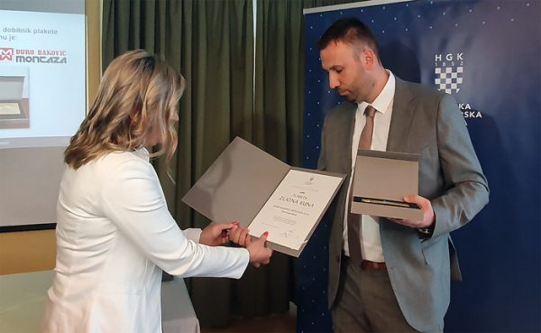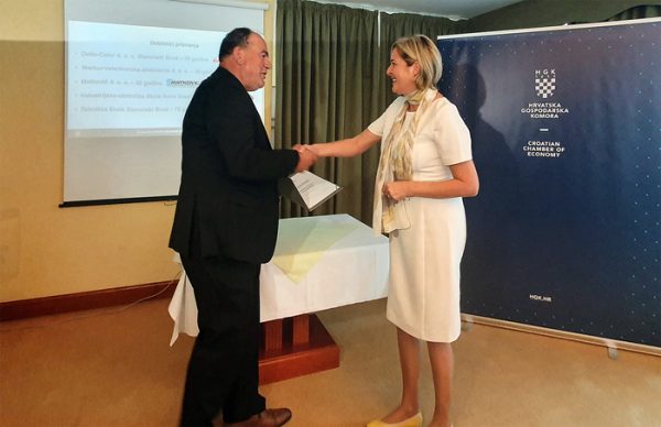 SLAVONSKI BROD – U Dvorani Hotela Savus 27. listopada u Slavonskom Brodu održana je svečana sjednica HGK – Županijske komore Slavonski Brod. U sklopu svečane sjednice na kojoj je predstavljen rad Komore najuspješnijim trgovačkim društvima u Brodsko-posavskoj županiji za poslovanje u 2021. godinu u kategorijama velikih, srednjih i malih poduzeća dodijeljena su priznanja “Plaketa Zlatna kuna 2022.” poduzeća te priznanja za dugogodišnje uspješno poslovanje i doprinos hrvatskom gospodarstvu. Priznanje “Zlatna kuna” dodjeljuje se za uspješnost u poslovanju i doprinos hrvatskom gospodarstvu u cjelini još od osamostaljenja Republike Hrvatske, a ideja o ovome priznanju nastala je kao izraz težnji da gospodarstvo, tada tek osnovane demokratske i neovisne Republike Hrvatske, na samom početku postojanja poprimi osobine kune, simbola izdržljivosti, snalažljivosti, spretnosti te lukavosti, ali i blagostanja te plodnosti.