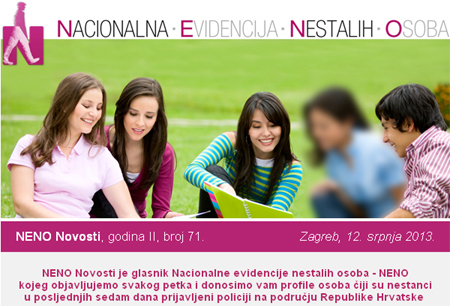 Osoba je pronađena ako se ne nalazi u Nacionalnoj evidenciji nestalih osoba.