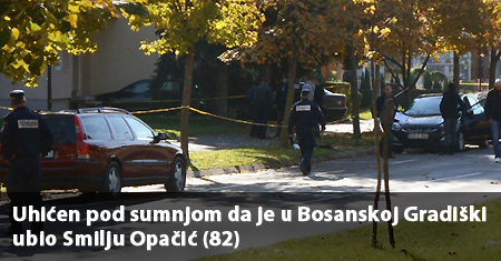 NOVA GRADIŠKA, 8. studeni 2014. – Kako se neslužbeno doznaje danas je novogradiška policija uhitila I.Š. (53) iz Starog Petrovog Sela. Sumnja se da je u ponedjeljak u središtu Gradiške (BiH) ubio Smilju Opačić (82).