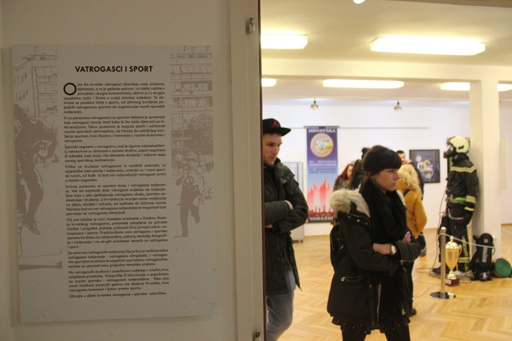Muzej hrvatskog vatrogastva se uključio u zadanu temu ovogodišnje “Noći muzeja”: Muzeji i sport-brže više jače, izložbom “Vatrogasci i sport”. Otvorenju izložbe u prepunom galerijskom prostoru su prisustvovali izaslanik župana Varaždinske županije Martin Hajdinjak, predsjednik Vatrogasne zajednice županije Varaždinske Nedeljko Vukalović, zapovjednik VZŽ Varaždinske i Javne vatrogasne postrojbe Varaždin Ivica Labaš, počasni predsjednik VZŽ Varaždinske zvonko Biškup, zapovjednik VZŽ Primorsko-goranske Mladen Šćulac, izaslanik gradonačelnika Grada Varaždina i predsjednik Vatrogasne zajednice Grada Varaždina Bogović, predsjednik DVD-a Prvi hrvatski dobrovoljni vatrogasni zbor u Varaždinu Mirko Svetec, počasni predsjednik VZŽ Varaždinske Zvonko Biškup te brojni predstavnici vatrogasnih društava i građani.
