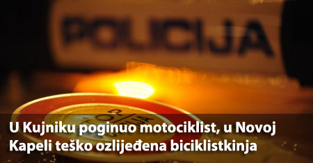 U KUJNIKU POGINUO 22-GODIŠNJAK IZ LUŽANA – U nedjelju, 3. travnja oko 19,20 sati na kolniku županijske ceste u naselju Kujnik dogodila se prometna nesreća u kojoj je smrtno stradao motociklist. Motociklom, SB registracija, vlasništvo 44-godišnjaka s područja općine Oriovac upravljao je prije stjecanja prava 22-godišnjak iz Lužana i kretao se kolnikom ceste kroz mjesto Kujnik od zapada u smjeru istoka. Motociklist je započeo radnju pretjecanja osobnog automobila, SB registracija koji se kretao ispred njega u istom smjeru i kojim je upravljao 33-godišnjak iz Oriovca. U trenutku dok ga je motocikli pretjecao 33-godišnjak također započeo radnju pretjecanja osobnog automobila koji se kretao ispred njega, a da prije toga nije provjerio da to može učiniti bez opasnosti za druge sudionike u prometu odnosno motocikli koji je već bio u fazi pretjecanja, uslijed čega je došlo do udara motocikla u stražnji lijevi dio osobnog automobila, a potom slijetanja motocikla s kolnika u odvodni kanal sa sjeverne strane i nakon toga udara motocikla u betonski rub kolnog ulaza. U ovoj prometnoj nesreći smrtno je stradao 22-godišnji vozač motocikla. Policija će protiv 33-godišnjeg vozača osobnog automobila nadležnom državnom odvjetništvu dostaviti kaznenu prijavu zbog kaznenog djela izazivanje prometne nesreće u cestovnom prometu, a prekršajni nalog 44-godišnjem vlasniku motocikla zbog davanja na upravljanje motocikla osobi koja nije stekla pravo na upravljanje tom kategorijom vozila.