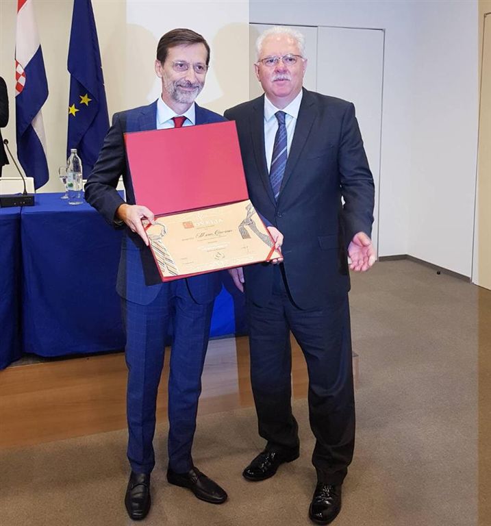 Plaketu o imenovanju su mu uručili Jelena Perleta, suvoditeljica Kluba za javnu diplomaciju Hrvatskog društva Ujedinjenih naroda i Marijan Bušić ravnatelj Academie Cravatica.