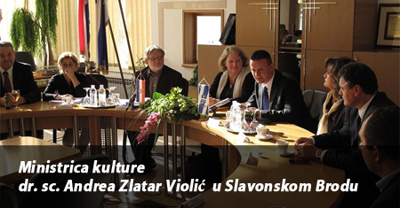 SLAVONSKI BROD 6. studenog 2012. – U Velikoj vijećnici Županijske uprave danas je Ministrica kulture dr. sc. Andrea Zlatar Violić održala radni sastanak sa predstavnicima Županije, na čelu sa županom Danijelom Marušićem,
