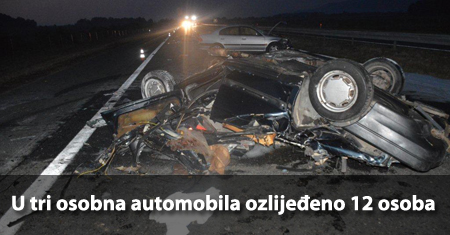 U prometnoj nesreći sudjelovala su tri osobna automobila u kojima je ozlijeđeno 12 osoba. Automobili su se kretali sjevernom kolničkom trakom iz smjera istoka prema zapadu, a tom prilikom od odbačenih dijelova ova tri automobila na suprotnu južnu kolničku traku oštećen je i osobni automobil koji se kretao iz smjera zapada prema istoku.