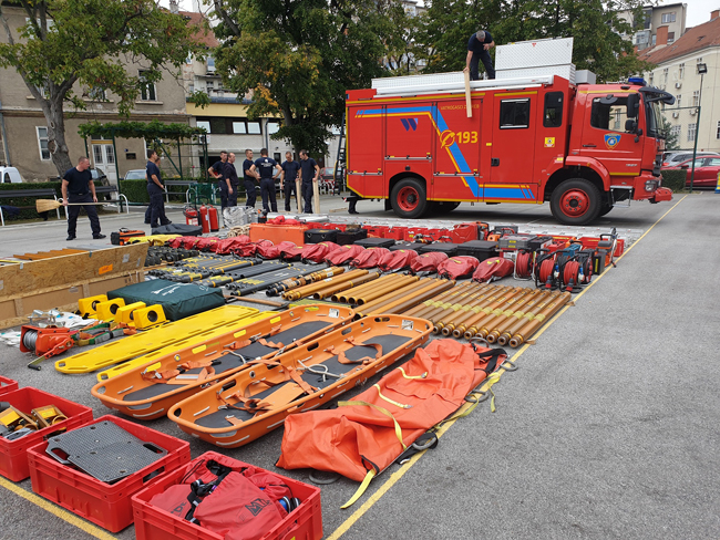 Javna vatrogasna postrojba Grada Zagreba posjeduje vozilo za teška spašavanja u kojem se nalazi oprema za urbano spašavanje iz ruševina. Samo vozilo može opsluživati dva tima za spašavanje u slučaju intervencija spašavanja s visina i dubina te u slučaju teških prometnih nesreća.