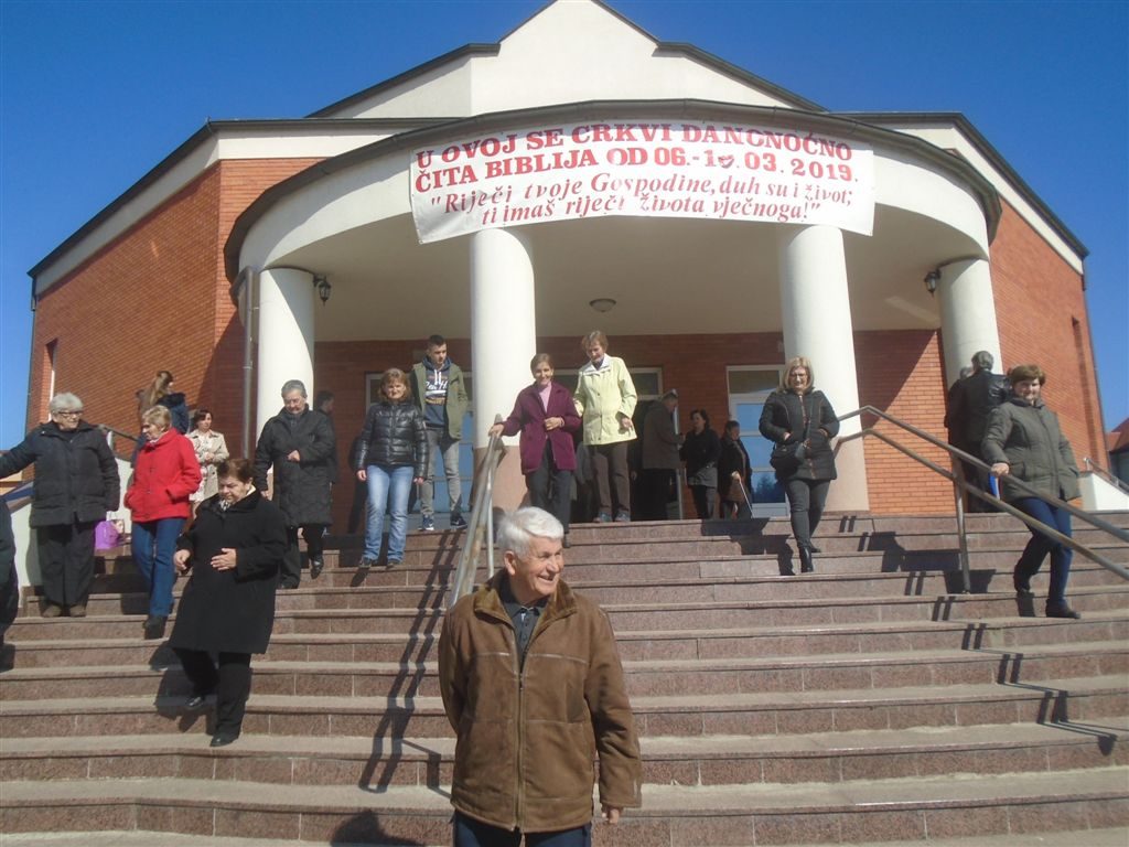 OKUČANI, 5. ožujka 2019. – Vjernici župe sv. Vida Mučenika u Okučanima, već deveti puta, na jedan od najsvetijih načina započinju Korizmu. Naime, u župnoj crkvi sv. Vida se organizira Biblijsko bdijenje u vremenu od 06. do 10. ožujka 2019. god. kada će se “od korica do korica” pročitati Sveto pismo – Biblija.