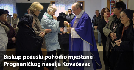 KOVAČEVAC, 10. prosinac 2015. – Tradicionalno, u Došašću, kada idemo ususret Božiću, požeški biskup msgr. dr. Antun Škvorčević svake godine pohodi mještane Prognaničkog naselja Kovačevac u novogradiškoj župi