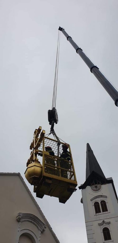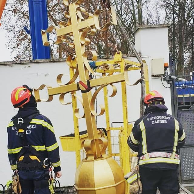 Skidanje križa sisačke katedrale