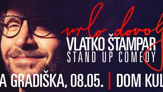 U četvrtak 8. 5. u 20:00 u Domu kulture Nova Gradiška gostuje stand up komičar Vlatko Štampar sa svojim nastupom „Vrlo dovoljan“.