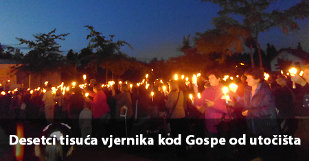 Nakon što je biskup zapjevao „Slava Bogu“ u počast svetoga Utemeljitelja Požeške biskupije, oglasila su se i zvona voćinskog svetišta a vjernici se pridružili pjevajući himan hvale. U svojoj propovijedi biskup je, među ostalim, rekao da je providnosnom odlukom pape Ivana Pavla II., nasljednika sv. Petra, prije 17 godina utemeljena Požeška biskupija i da su brojna hodočašća u biskupijska marijanska svetišta svojevrsno okupljanje na jednodušnu i ustrajnu molitvu s Isusovom Majkom, da se u srcima vjernika otvorenima tim putem događa Isusov zahvat Duha Svetoga, po kojem se učvršćuje zajedništvo požeške mjesne Crkve i ostvaruje poslanje koje joj je povjereno. Zahvalio je svima koji ne odustaju od te molitvene ustrajne jednodušnosti pa po njima Isus Krist služenjem svoje Majke može u suvremenom hrvatskom društvu ostvarivati svoje djelo spasenja. Nakon popričesne molitve, na liturgijskom prostoru ugašena su svjetla, ali je započela služba svjetla, hvala i molbenica Isusovoj Majci, u kojoj se zahvaljivalo za dar svetosti pape Ivana Pavla II. po Marijinu zagovoru i preporučalo hodočasnike njezinoj zaštiti. Za to vrijeme u maloj procesij,i po svim dijelovima prostora na kojem se odvijalo euharistijsko slavlje, pronesen je lik Gospe Voćinske. Vjernici su mu mogli izraziti svoje poštovanje s upaljenim svijećama, pjesmom i molitvom. I ovom prigodom voćinsko svetište je, vjerničkim uzdizanjem svijeća uvis, popraćeno pučkim pjesmama i poklicima podarilo sudionicima slavlja snažno iskustvo zajedništva, ispunjenosti Božjom blizinom, radošću i mirom. Biskup je na svršetku slavlja svima zahvalio za sudjelovanje i poželio da puninu srca koju nose svojim kućama podijele sa svima koje će susresti te najavio daljnji biskupijski marijanski hod sljedećih dana u pleterničkom svetištu Gospe od suza, zatim u Kutjevu, pa na Gospinom polju i ponovno u Voćinu, za Malu Gospu.