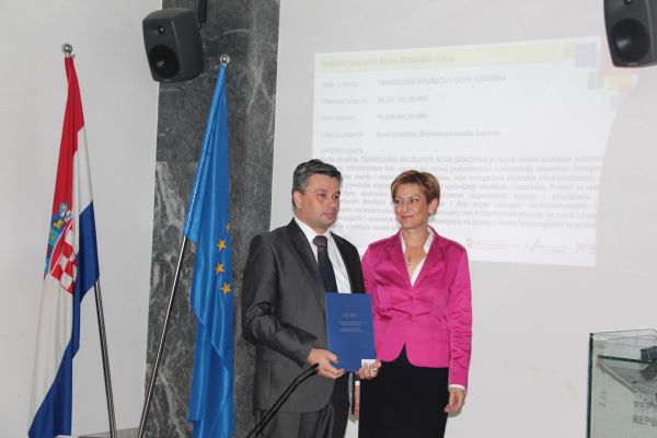 Dana 14. srpnja 2017. godine u Ministarstvu gospodarstva, poduzetništva i obrta direktoru Industrijskog parka Nova Gradiška d.o.o. dodijeljena je odluka o financiranju projekta vrijednoga 23 milijuna kuna za razvoj visokokvalitetne poduzetničko poslovne infrastrukture.