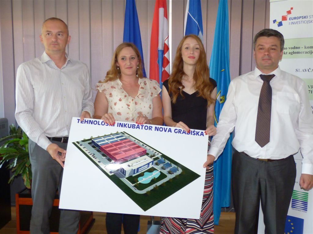 NOVA GRADIŠKA, 19. srpnja 2016. – Smisao konferencija za novinare je da se oni koji ih sazivaju s nečim pohvale ili u javnost plasiraju svoje želje i naume. Bilo je tako danas u uredu gradonačelnika Vinka Grgića. Razlog za okupljanje novinara bio je jako opipljiv i vrijedan čak 20 milijuna nepovratnih kuna koji će se utrošiti u izgradnju i opremanje Tehnološkog inkubatora u Industrijskom parku Nova Gradiška.
