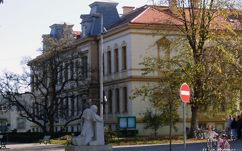 Zgrada Gimnazije sagrađena je 1896. godine za potrebe Više pučke škole. Obnovljena je nakon stradanja u Domovinskom ratu, a nakon najavljene energetske obnove ove slavljeničke godine trebala bi zablistati u novom sjaju.