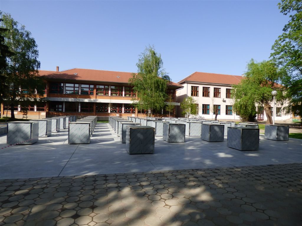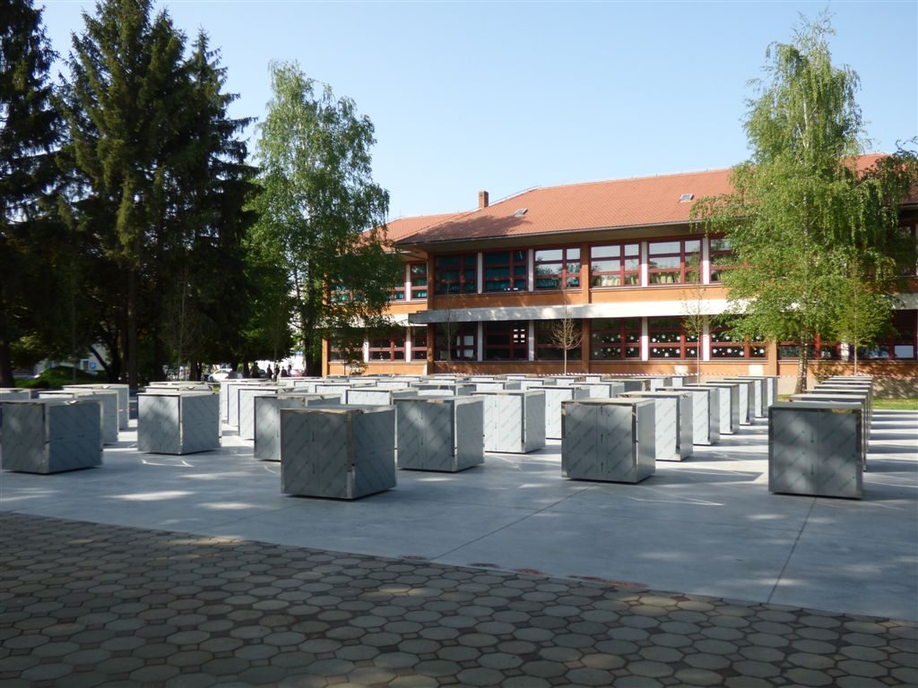 U pravilnom prostornom rasteru kocaka stvoren je memorijalni prostor kojem je glavni prilaz blagom rampom s juga. Postavljanje vijenca predviđeno je u podnožju prvog reda kocaka, na način da se na njih naslanjaju, gdje se također mogu upaliti i svijeće.
