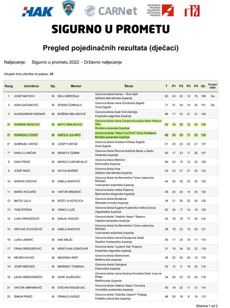 -Ovo je 11 puta od 28 državnih natjecanja „Sigurno u prometu“ da smo prvi, pet puta smo bili drugi i tri puta treći. Sa Marijom Banjak 26 učenika naše škole predstavljalo Hrvatsku na Europskom natjecanju – kaže Mato Šimunović.
