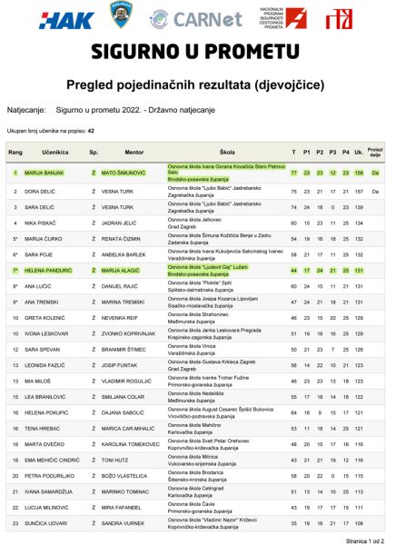 Ekipa Brodsko-posavske županije osvojila je 1. mjesto, a Marija Banjak iz OŠ Ivana Gorana Kovačića, Staro Petrovo Selo 1. mjesto u kategoriji djevojčice i mjesto u ekipi Hrvatske na Europskom natjecanju koje će se održati u Zadru.