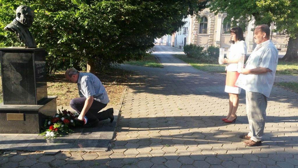 SLAVONSKI BROD, 8. kolovoza 2017. – Uz 89.obljetnicu smrti Stjepana Radića, kojoj je povod atentat u beogradskoj skupštini uzrokovan proeuropskim, gospodarski nacionalno osviještenom politikom HSS-a i samog Radića, izaslanstvo HSS-a Brodsko-posavske županije, potpredsjednici ŽO Klara Šćuka i Stjepan Budimir potpredsjednik GO Ivan Žanko i ostali članovi, zapalilo je svijeće i položilo cvijeće kod biste Stjepanu Radiću u Slavonsko Brodu , nakon čega su sudjelovali u misnom slavlju u Velikoj crkvi.