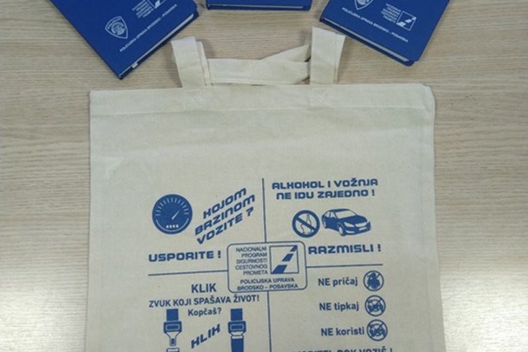 S obzirom da je upotreba plastičnih vrećica sve manje popularna, a jednim dijelom i zabranjena, te da se sve više potiče upotreba trajnih – platnenih vrećica, policijski službenici Policijske uprave brodsko – posavske, osmislili su i izradili određenu količinu promidžbenih platnenih vrećica na kojima su otiskane poruke na temu „4 ubojice u prometu“, koje će se koristiti za ovakve i slične akcije.