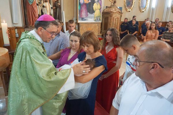 Na kraju misnog slavlja biskup je zahvalio župniku Nikoliću na pozivu te s radošću i zahvalnošću čestitao roditeljima što su prihvatili dar života. Poručio im je da uvijek kao obitelj budu oslonjeni na Boga. „U Bogu gradite temelj vašeg obiteljskog života s molitvom. Nastojte u Dinu i ostalu djecu utkati ljubav prema Bogu. Ljubav prema Bogu je vjera u Boga. To je ključno za svakoga od nas. Ne možemo u životu sve znati pa i kad je u pitanju vjera, ali možemo vjerovati sve što nam je Bog objavio. I kada nam nije jasno, možemo vjerovati i vjerujući, Bog će nam u molitvi dati svoje svjetlo, prosvijetlit će naše nejasnoće, teškoće, pobijedit će naše sumnje, ono što je nedokučivo“ ustvrdio je biskup. Potom se obratio članovima Dobrovoljnog vatrogasnog društva koji su svojim sudjelovanjem posvjedočili ljubav i zahvalnost prema pokojnom Zlatku. „Lijepo je ovo vaše zajedništvo koje ste kao vatrogasci iskazali prema njemu i njegovoj obitelji. To je znak ljubavi Božje prema njemu, ali i ono što činite prema nama u našim stvarnostima i nevoljama također je znak ljubavi prema Bogu. Kada su poplave, požari i druge nevolje u kojima se izlažete, vi iskazujete ljubav Božju koju on očekuje od svakoga od nas. Hvala vam na vašoj ljubavi, žrtvi i svemu onome što činite za druge“, rekao je biskup te povjerio Gospodinu njih, obitelj Bilešić i sve nazočne vjernike i poželio im da budu nositelji ljubavi koja se prepoznaje u djelima.