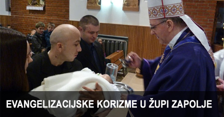 sudjeluje na programu i održava kateheze. U petak, 16. ožujka posjetio je župu Zapolje, predvodio euharistijsko slavlje i tom prigodom krstio Luku, šesto dijete u obitelji Zvjezdana i Melite Grganić te održao katehezu o braku, ljubavi i obitelji. Na početku slavlja biskupa je pozdravio župnik fra Čedomil Vešligaj, izrazivši radost vjernika što ih pohađa. Biskup je u uvodnoj riječi istaknuo kako je slavlje krštenja šestog djeteta u obitelji Grganić važna postaja Evangelizacijske korizme Požeške biskupije na kojoj želi čestitati i zahvaliti toj obitelji na njezinu opredjeljenju za život, razmišljati o kršćanskom braku i moliti da se ove korizme između ostalog obnovimo i u svijesti evanđeoskog vrednovanja braka i obitelji. U homiliji biskup je podsjetio kako nas suvremeni način života potiče da budemo djelatni na izgradnji svijeta te se naše aktivnosti svode na stvarnost koja nas okružuje.