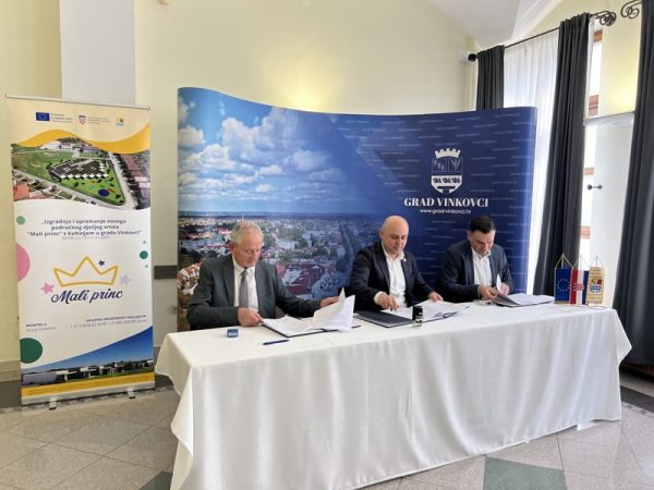 VINKOVCI, 1. ožujka 2024. – Današnjim potpisivanjem ugovora s izvođačem radova ispunjeni su svi potrebni preduvjeti i uskoro kreće gradnja Malog princa, prvog novog vrtića koji će u gradu na Bosutu biti izgrađen nakon više od 40 godina, a s kojim će Vinkovci dobiti dodatnih 176 vrtićkih mjesta.
