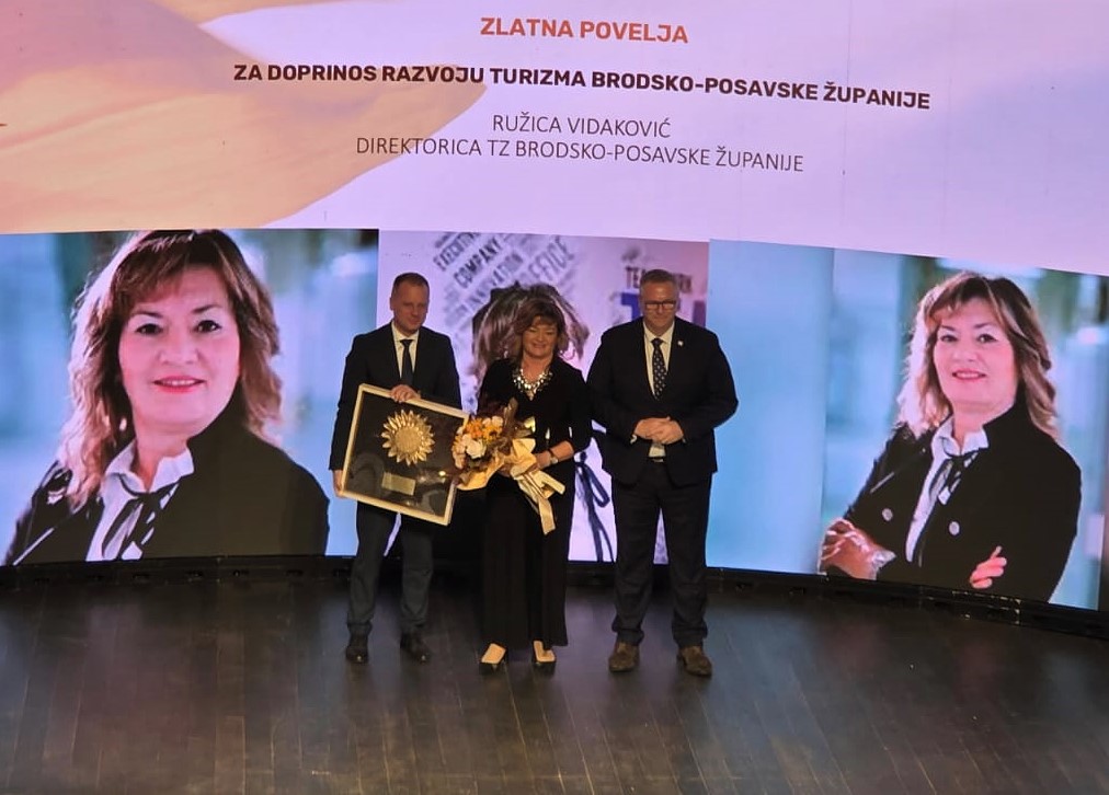 –Ružica Vidaković, direktorica Turističke zajednice Brodsko–posavske županije nagrađena je Zlatnom poveljom za doprinos razvoju turizma Brodsko – posavske županije.