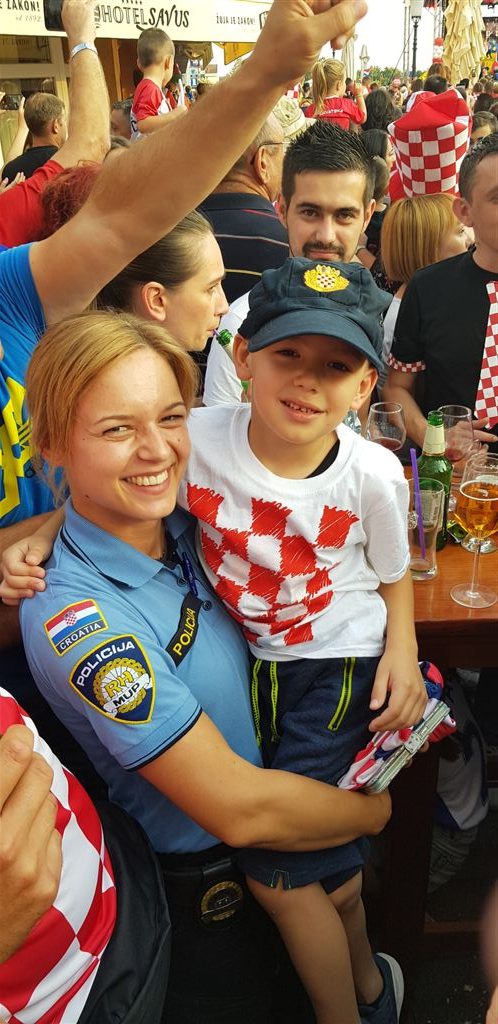 nakon što se jučer na brodskom korzu na dočeku Maria Mandžukića ova prekrasna policajka slikala sa mojim sinom sva djeca okolo su rekla da će biti policajci kada narastu, njen osmjeh ih je sve kupio. Stvarno je oduševila sve okolo kada je skinula svoju kapu i dala mom sinu da se slika sa njom. Naklon do poda. Ako joj ne možete dati jedan bar jedan slobodan dan za promociju policije onda joj bar dajte 5 u zalaganje. Svaka čast!“ – uz pohvale poručio je Brođanin Brodsko-posavskoj policiji.