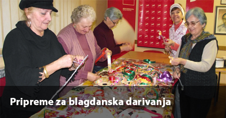 NOVA GRADIŠKA, 21. studenoga 2013. – Članice Foruma žena SDP-a, predvođenje predsjednicom Zoricom Popović, danas su se okupile u stranačkim prostorijama kako bi obojile i okitile šibe koje će dijeliti građanima