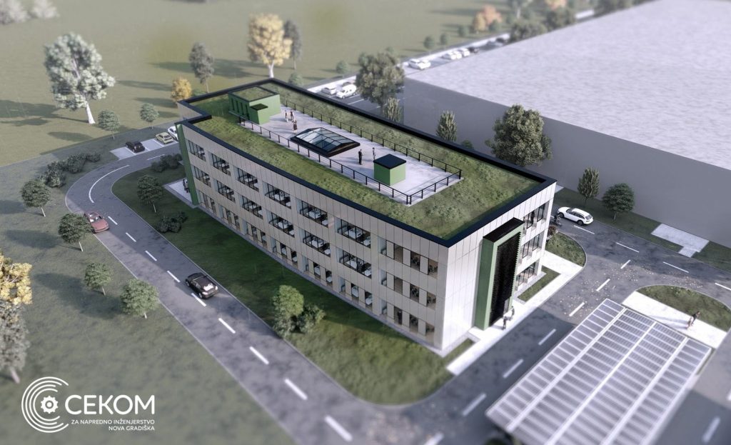 NOVA GRADIŠKA, 12. travnja 2022. Izgradnja poslovne građevine Centra kompetencija za napredno inženjerstvo u Industrijskom parku Nova Gradiška, zajedno sa opremom vrijedna 119,2 milijuna kuna, od kojih bespovratna sredstava Europskog fonda za regionalni razvoj iznose 78.150.531,29 kuna, pobudila je interes poslovne i javnosti uopće. O značaju koji ovaj projekt ima, na potpisivanju ugovora za izgradnju i nadzor građenja, govorili su Adam Đanmić, direktor CEKOM-a, gradonačelnik Vinko Grgić i Stjepan Bošnjaković, voditelj Upravnog odjela za gospodarstvo Brodsko-posavske županije.