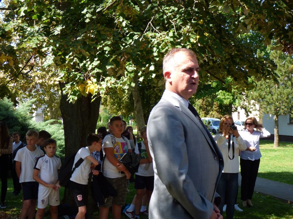-Možda se pitate kada je to bilo i zašto se to desilo. Sigurno u vašim glavicama se te misli prožimaju. Znajte da se sjećamo 16. rujna 1991. godine kada su iz prostora naše škole krenuli branitelji u obranu Domovine zbog nametnutog nam rata i agresije koja se u to vrijeme dešavala. Zato, upravo s vama, želimo podijeliti te slavne trenutke naše povijesti, prenijeti na vas sve ono što su tekovine Domovinskog rata nama donijele i budućnost koja je pred vama.