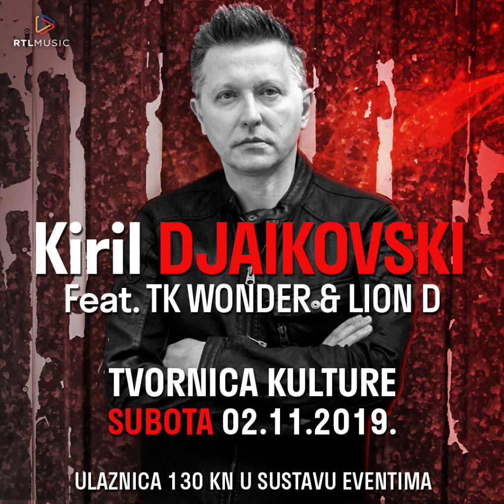 DJAIKOVSKI feat. TK WONDER & LION D – Miljenik hrvatske publike, DJ i renomirani glazbenik punog imena Kiril Džajkovski, vraća se u Zagreb nakon dvije godine i to na veliku pozornicu Tvornice Kulture, 2. studenog 2019.!