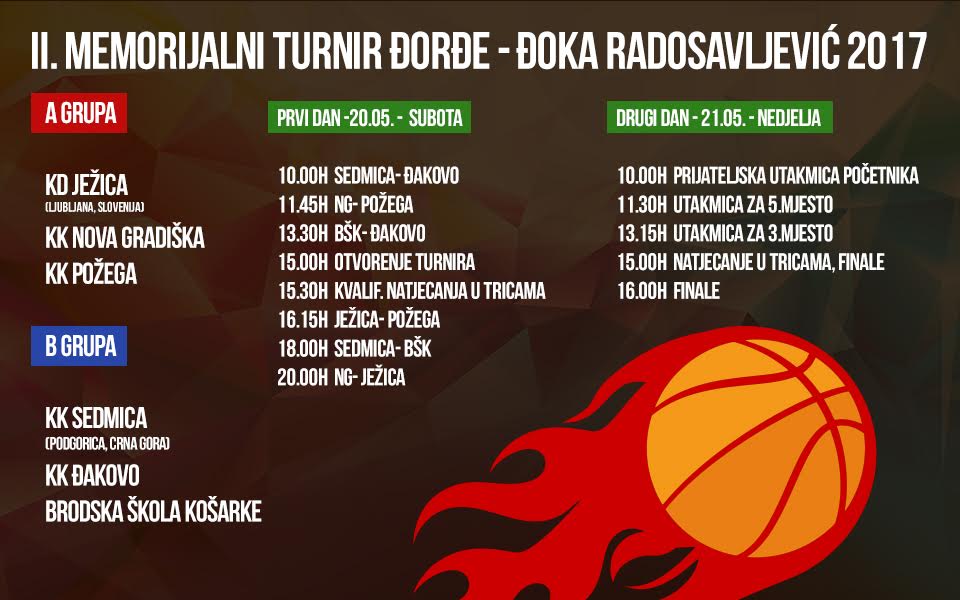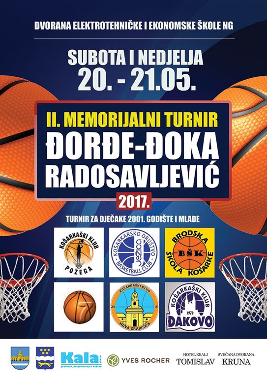 NOVA GRADIŠKA – U organizaciji košarkaškog kluba Nova Gradiška 20. i 21. svibnja održava se II. međunarodni memorijalni košarkaški turnir “Đorđe-Đoka Radosavljević” za kadete (dječaci 01.godište i mlađi) .