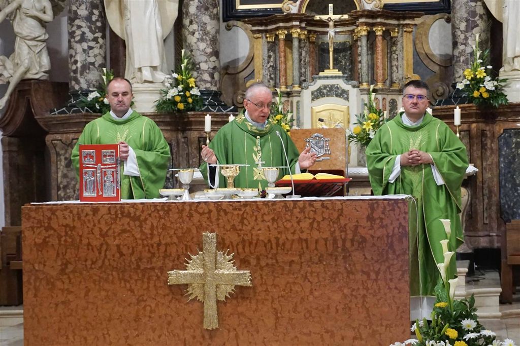 U homiliji biskup je na temelju ulomka drugog čitanja iz Poslanice Rimljanima poručio sudionicima slavlja da je Duh Sveti ono najdragocjenije što može prebivati u njihovim srcima. »Mi danas imamo srce puno pitanja, među ostalim kako će biti na izborima, kako s koronavirusom, potom pitanja iz našeg osobnog i obiteljskog života. No, najvažnije je postaviti si pitanje je li Bog, njegov Duh prisutan u mom srcu, jer se tada može nešto ozbiljnije sa mnom dogoditi«, ustvrdio je biskup. Tumačeći evanđeoski ulomak primijetio je kako uobičajeno govorimo da nas je Isus naučio samo jednu molitvu – Očenaš, a da u današnjem evanđelju susrećemo Gospodina kako moli na sasvim određeni način. »Isus ponajprije uzdiže zahvalnost i slavu Bogu što on svoja otajstva i svoje naume objavljuje malenima. U malenima je prisutna Božja misao i njegove nakane o čovjeku, sudbina čovječanstva i svijeta. Kakvog li izazova! Dok oni veliki, koje nazivamo gospodarima svijeta, u svojim srcima imaju neke svoje naume, maleni imaju Božje naume.«