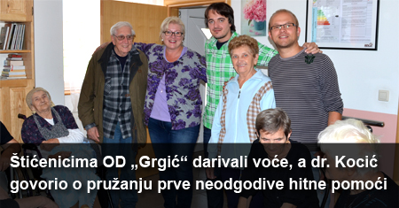 Štićenike Obiteljskog doma „Grgić“ posjetom je oduševio dr. Kocić koji je prezentirajući svoj autorski DVD, jedinstven u Europi, o pružanju prve neodgodive hitne pomoći i uporabi AVD uređaja, educirao štićenike ali i osoblje doma, te svojim iskustvom i savjetima oplemenio i pokazao svrhu ove posjete. Istaknuo je, da se stariji, bez obzira u kakvoj se životnoj, zdravstvenoj i ekonomskoj situaciji nalazili, ne smiju predat, te da trebaju biti fizički i mentalno aktivni koliko god mogu.