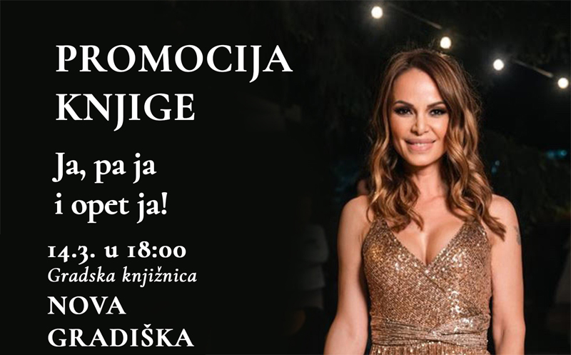 NOVA GRADIŠKA -Gradska knjižnica Nova Gradiška vas poziva na promociju knjige Ja, pa ja i opet ja! (vodič za preživljavanje narcisa) autorice Josipe Pavičić koja pomno proučava narcisoidnu osobnost, taj neizlječiv i često za okolinu razoran poremećaj s kojim se danas sve češće susrećemo u svim životnim područjima: od obiteljskog i prijateljskog okruženja preko poslovnog i javnog pa sve do romantičnih odnosa.