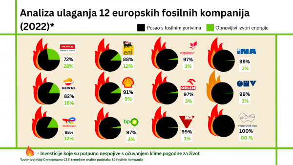 Zagreb, 23. kolovoza, 2023. – Dvanaest vodećih europskih naftnih kompanija obmanjuju javnost o spremnosti da smanje vlastiti štetan utjecaj na klimu postupnim prelaskom na obnovljive izvore energije, zaključak je analize koju je naručio Greenpeace u središnjoj i istočnoj Europi (Greenpeace CEE).