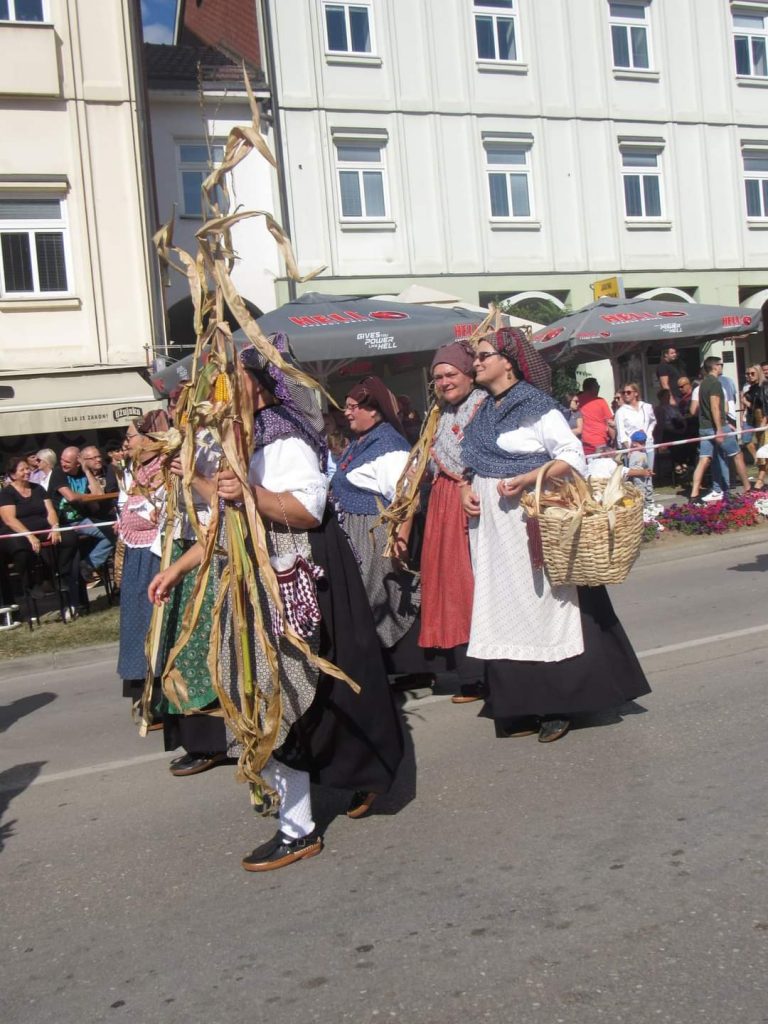 Što se tiče mimohoda, bili smo drugi po redu, vrlo veseli, stalno smo pjevali jesenske pjesme i bećarce, zaigrali kolo, nasmijali prisutne. Naš Ivan pripremio je cijele stabljike kukuruza, a članice su nosile pune sepete kukuruza. Naši muški članovi, pjevači i svirači bili su tako veseli, a mlade i starije članice ponosne na sve što pokazuju. Svakako želimo spomenuti i čast koju smo dobili, naš Karlo Tkalčec bio je na čelu mimohoda i nosio veliku Hrvatsku zastavu. – ističe voditeljica društva Vesna Vlaović