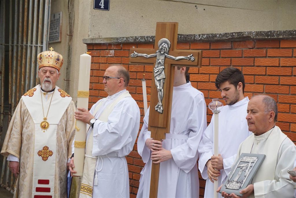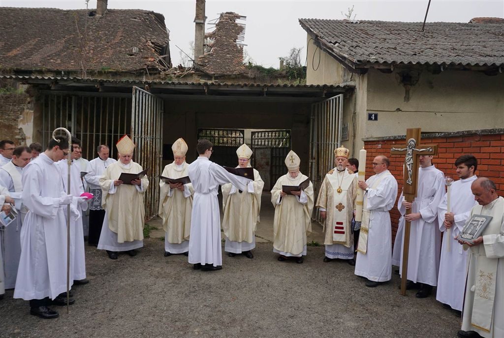STARA GRADIŠKA . 16. travnja 2018. -Prigodom 10. obljetnice utemeljenja Đakovačko-osječke crkvene pokrajine, biskupi, svećenici i đakoni Đakovačko-osječke nadbiskupije te Srijemske i Požeške biskupije, u ponedjeljak prije Nedjelje Dobrog Pastira, 16. travnja hodočastili su u Staru Gradišku, kako bi očitovali svoju zahvalnost svećenicima koji su u komunističko vrijeme ondje tamnovali. Uz biskupa domaćina Antuna Škvorčevića, sudjelovali su Đuro Hranić, đakovačko-osječki nadbiskup i metropolit, Marin Srakić, đakovačko-osječki nadbiskup u miru, Đuro Gašparović, srijemski biskup a pridružio im se i križevački nadbiskup Nikola Kekić sa skupinom svojih svećenika. Hodočasnici su se najprije okupili u župnoj crkvi Sv. Mihaela Arkanđela na molitvu Trećeg časa, koju je predvodio domaći biskup Škvorčević. On je u pozdravu izrazio  radost što su se prigodom 10. obljetnice utemeljenja Đakovačko-osječke crkvene pokrajine, a u pripravi za Nedjelju Dobrog Pastira, na hodočašću u Staroj Gradiški – mjestu zatvorskog progona, poniženja i stradanja brojne svećeničke braće – okupili zaređeni službenici Đakovačko-osječke nadbiskupije te Srijemske i Požeške biskupije. Rekao je da ovim hodočašćem progonjenim svećenicima želimo iskazati poštovanje i zahvalnost, te očitovati radost što po riječima sv. Petra možemo s njima biti „zajedničari Kristovih patnjâ“. Podsjetio je nazočne da su komunističke vlasti 1948. godine odredile rušenje starogradiške župne crkve sv. Mihaela Arkanđela, prisiljavajući utamničene svećenike da u tom sudjeluju. Zbog toga je Stara Gradiška kroz šezdeset godina bilo bez ikakva kršćanskog znaka, a za vjernička okupljanja služila je župna kuća u nedalekim Uskocima. Također ih je podsjetio da je na spomen svećenicima robijašima 2010. godine, kad se slavila Svećenička godina, izgrađena nova crkva Sv. Mihaela Arkanđela, a pokraj nje Memorijal, prostor trajnog molitvenog spomena na njihovu vjernost Bogu, Crkvi i narodu. Biskup je dodao: „Dok se spominjemo naše svećeničke braće, u mislima i molitvi su nam i svi hrvatski rodoljubi koji su tijekom komunističkog vremena nedužno tamnovali u Staroj Gradiški kao i u Domovinskom ratu kada su srpske vlasti držale ovdje zatvorene brojne hrvatske vojnike i civile. S raspoloženjem iskrena žaljenja za zlo naneseno nedužnim ljudima, iskazujemo poštovanje i žrtvama svih  naroda, svjetonazora i vjera, srpskim vladikama i svećenicima, Židovima i Romima, utamničenima u starogradiškom zatvoru i obližnjem jasenovačkom logoru u vrijeme totalitarnih sustava XX. stoljeća“.